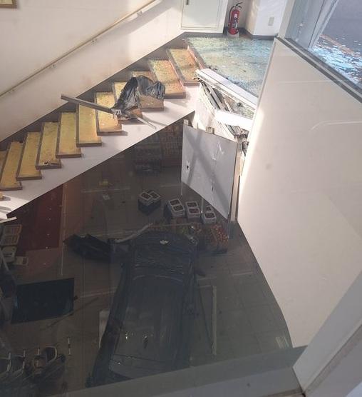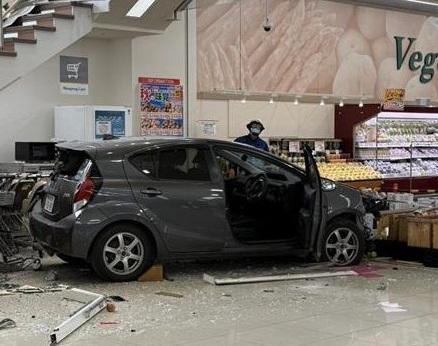 事發在周二的下午2時半,有超市職員報警表示有汽車掉落超市2樓賣場。警察到場,發現汽車是從頂樓的停車場,撞破天台的玻璃門後,通過樓梯中庭掉落下一層的超市。超市內沒有人受傷,而駕車的74歲男子就右腿受傷送院。