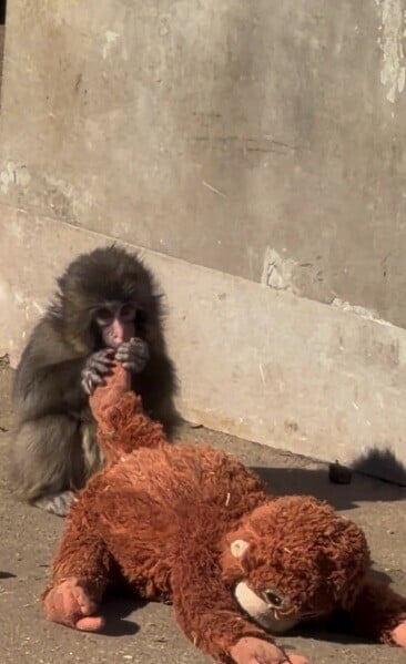 日本千葉縣猴B愛玩猩猩公仔爆紅 背後有洋蔥 園方籲:好好守護牠(有片)