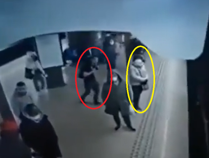 據監視器拍到的畫面,揹着後背包的男子靠近受害人,接着突用力出手一推,受害人受到外力衝擊,來不及停下腳步跌入了鐵軌。一旁等車的乘客趕緊上前查看情況,並向列車駕駛示意,列車也立刻停了下來。