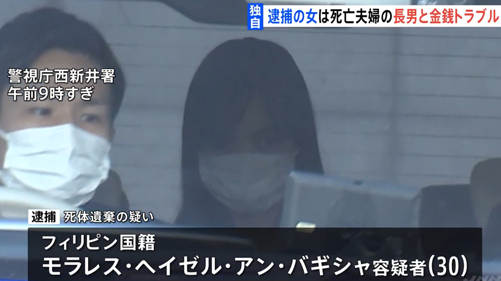 菲律賓籍女子被指與東京一對夫婦被殺案件有關。(新聞截圖)