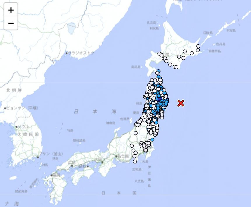 日本東北外海於當地時間周日下午5時許,黎克特制6.7級地震,震央位於三陸近海,震源深度10公里。岩手及宮城縣部分地區有強烈震感。