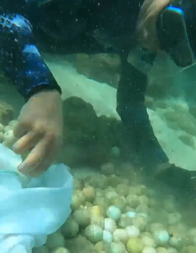 日媒《富士新聞網》(FNN)報道,隸屬沖繩縣的宮古島是日本數一數二的觀光勝地,但是當地民眾日前潛水時發現,海底的沙地遍布一顆顆「圓形石頭」,仔細一看竟是高爾夫球。