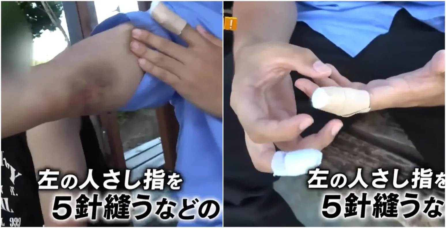 據《NHK》報道,傷者中,有人被咬到骨折、還有人當場血流如注縫了60針、另外還有10歲小孩右手中指被咬,縫了30針。另外一名55歲男子,為了保護孫子,只不過揮手要趕走,馬上被海豚撕咬,導致手指和左手腕受傷。