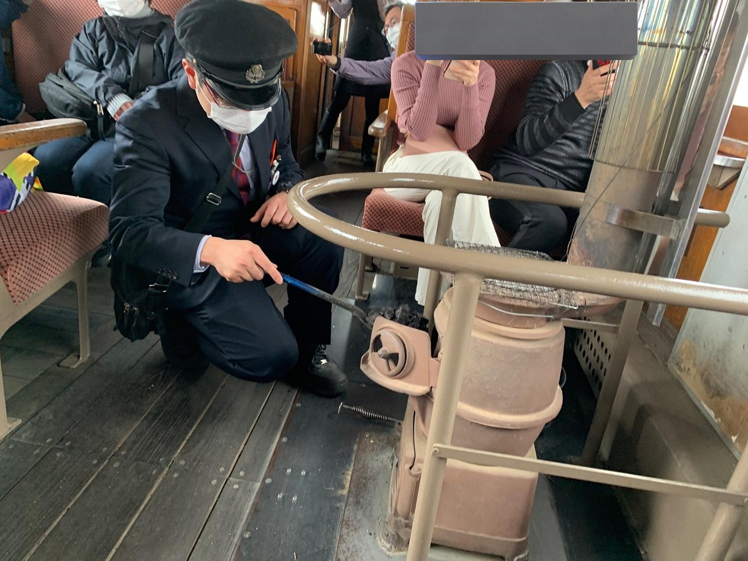 暖爐列車是津輕鐵路的觀光列車,車上設有炭爐,供乘客取暖以及烤魷魚。列車以4卡的編組,前2卡是普通的柴油列車車廂,後2卡是暖爐車卡。
