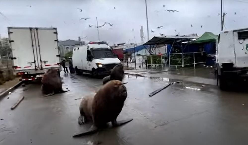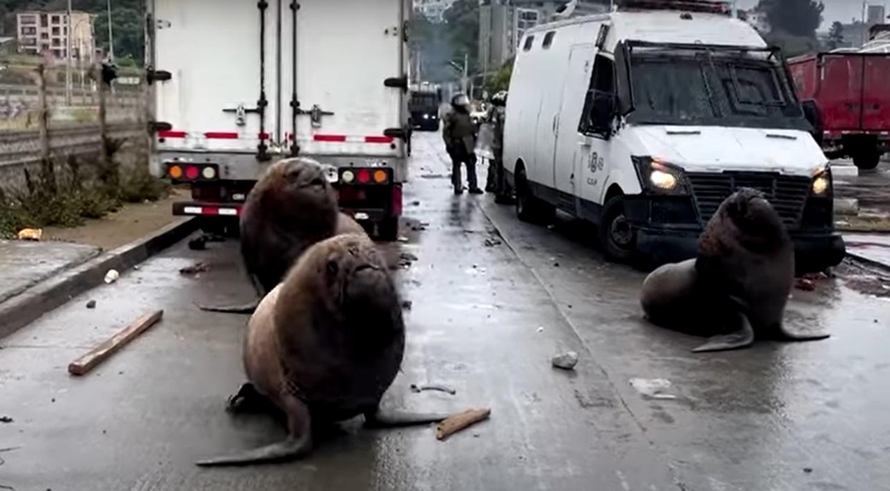 一批漁民就當局禁止捕撈鱈魚,周四(28日)於最大海港瓦爾帕萊索示威,要求當局作出補償,他們高叫口號並堵塞一條街道,大批防暴警員到場戒備,雙方對峙,期間突然有3隻南海獅,若無其事地在防暴警車前閒逛或休息,另有大批海鷗在空中盤旋,還毫不客氣地在警車上吃魚,與現場緊張氣氛形成強烈對比,焦點亦被這些「不速之客」搶去。防暴警員則站在遠處,未有驅趕。