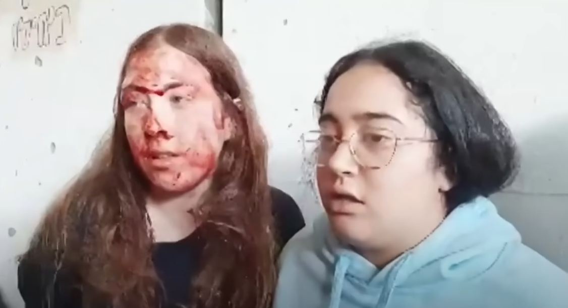 名為「人質家屬論壇」的組織發放片段,揭示去年10月7日哈馬斯突襲以色列時,從以國南部軍事基地擄走多名女兵。片段可見女兵被反綁雙手,有人臉部被打傷、嘴部血流如注、身上血跡斑斑,並被哈馬斯分子一邊拍片,一邊辱罵。