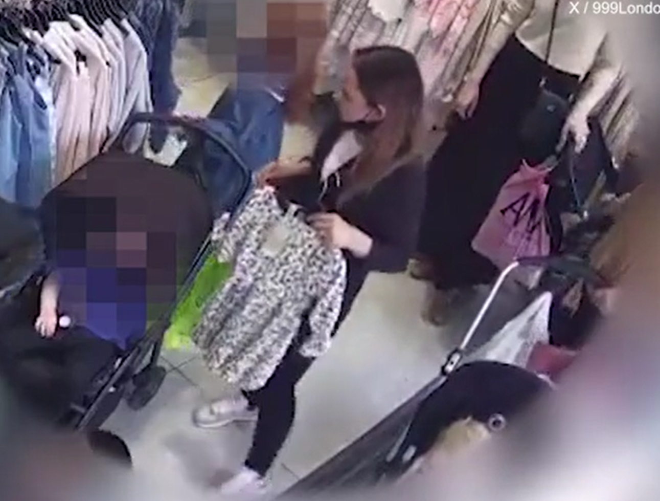 至於最新曝光的片段則攝於北倫敦的一間服裝店內。閉路電視片段可見,一名穿黑色衫女子,在另一名穿啡衣婦人身後挑選衣服,她似乎很快便有心水,從貨架上拿下兩條裙,一邊作狀查看,一邊對啡衣婦人亦步亦趨。