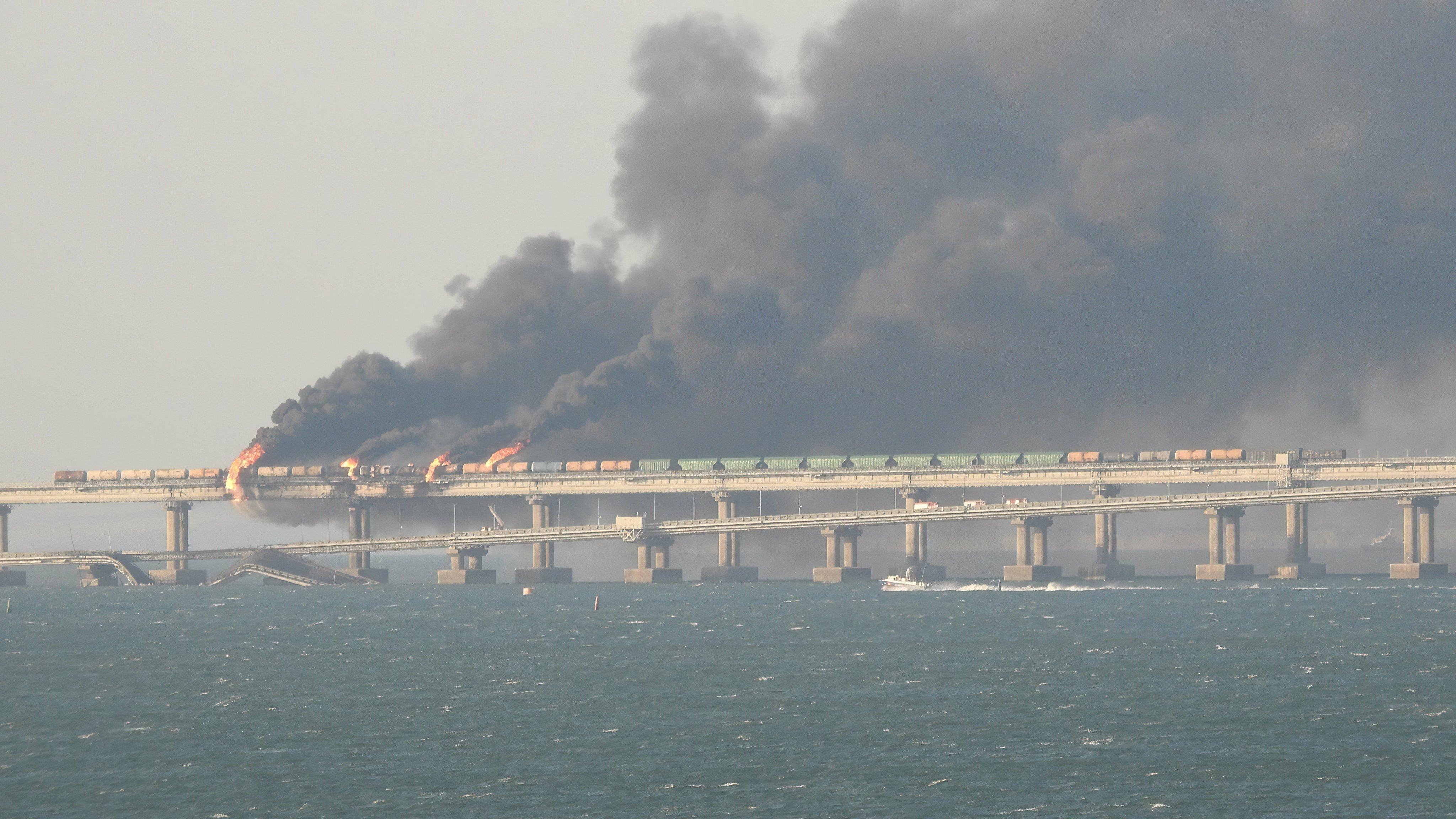 俄羅斯國營媒體表示,大橋上的一輛運送燃料的列車起火,未有說明原因。有關大橋是連接俄羅斯本土與克里米亞之間的克里米亞大橋,是俄羅斯在2014年吞併克里米亞之後興建。在俄羅斯入侵烏克蘭後,被指是俄羅斯運送軍事設備進入烏克蘭的樞紐。據報列車今早在途中發生爆炸,大橋的行車及鐵路路線已經中斷。