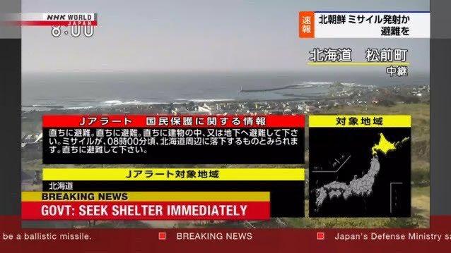 WATCH: Sirens wail in northern Japan as people are urged to seek shelter for North Korean missile pic.twitter.com/Ax7jtxBC7k