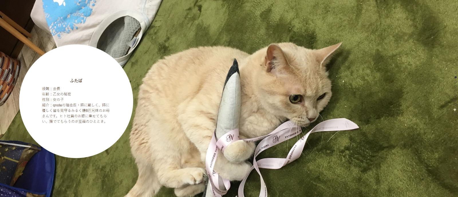 報導指出,Qnote成立於2003年,隔年就招收了第一名「貓員工」,是附近一家壽司店裡的流浪貓「雙葉」。公司稱僱用貓咪好處很多,透過照顧這些毛孩同事,人類員工之間能夠做到積極溝通,縮短人與人間距離。