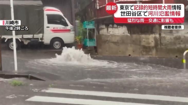 據日媒報道,下午1點過後東京地區雷雲迅速發展,並出現大雨。下午2點40分,東京世田谷區一小時內降雨量就高達89.5毫米。此外,還出現了破紀錄的短暫強降雨,東京世田谷區和神奈川縣川崎市宮前區附近,一小時內降雨量甚至達約100毫米。