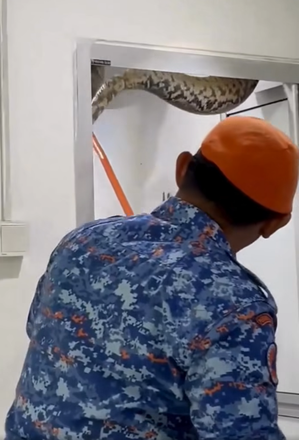 巨蟒闖馬來西亞民居,藏身在浴室假天花內。(互聯網)