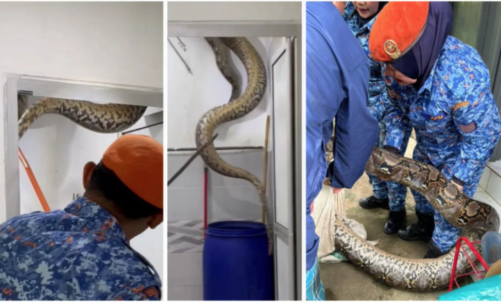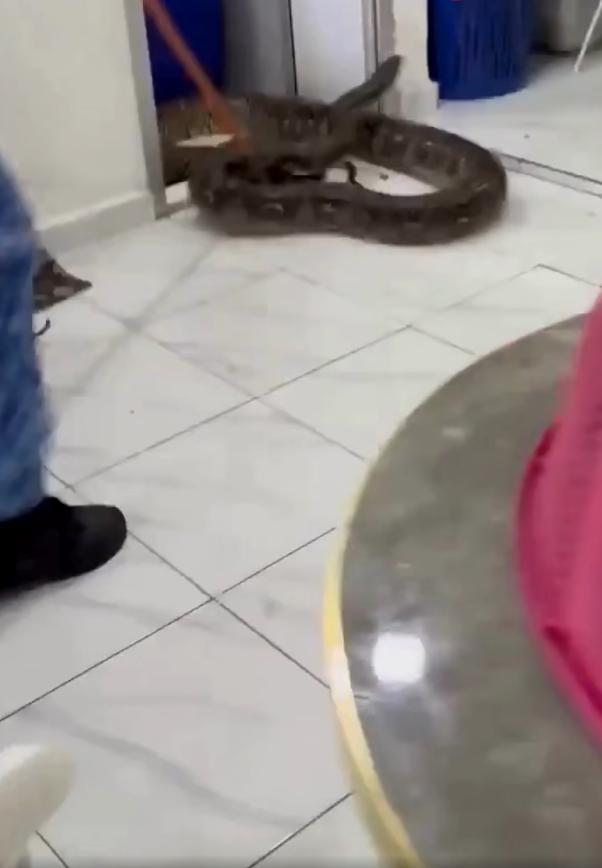 馬來西亞吉打州一個住宅的浴室假天花竟然藏有一條長約3至5米、重60公斤的大蟒蛇,住戶嚇破膽。報道指,屋主15歲女兒下午放學回家發現天花板破裂,害怕到不敢使用浴室。其母親之後返回家裡立即查看,起初還以為裂縫內有一塊染布。她說:「我很疑惑怎麼會有染布在天花裡面,結果女兒用手機拉近鏡一看,才驚覺那竟然是蛇身。」
