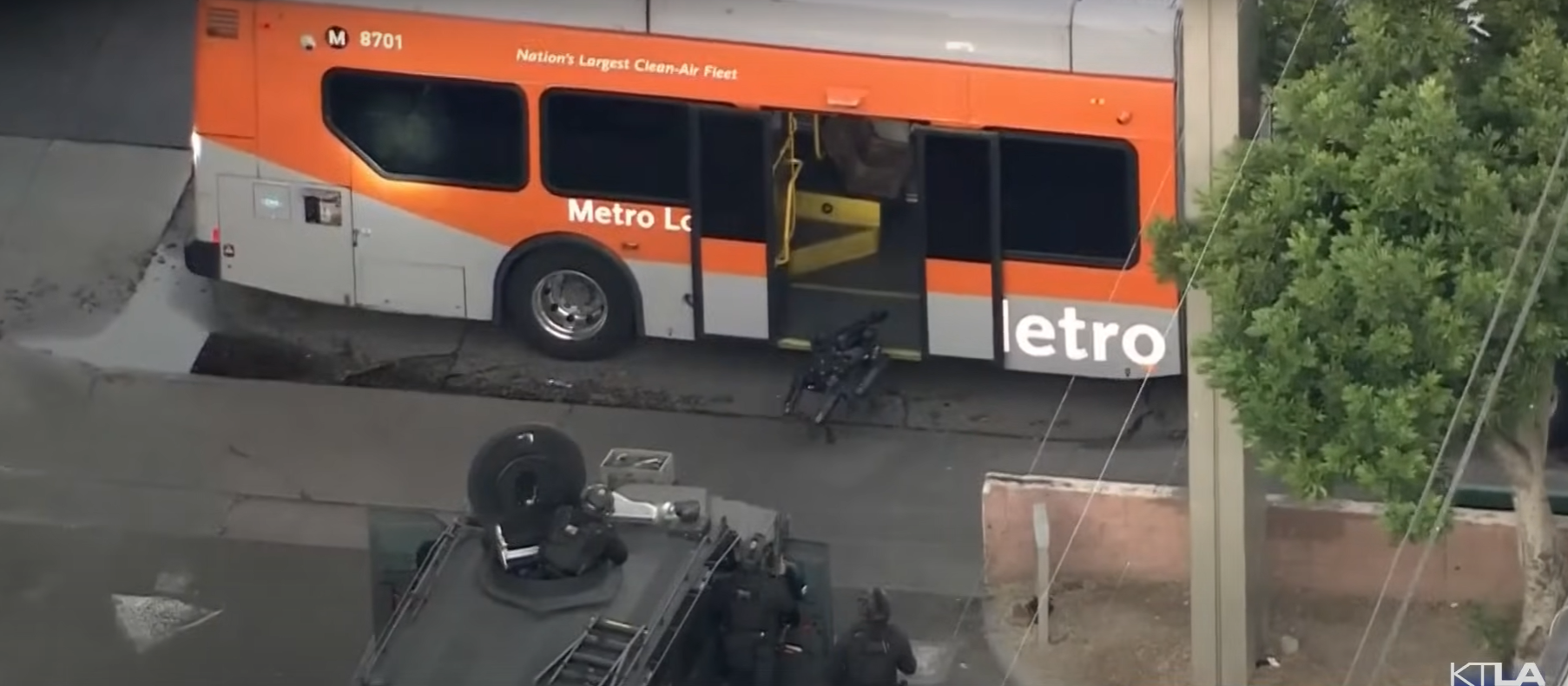 案發在周三清晨3時45分,洛杉磯一架巴士上的乘客,驚見在車上睡著的一名黑人男子有槍,隨即通知司機報警。巴士之後在中途停車,所有乘客下車後,該名黑人男子似乎仍然未醒,大批警員連同特警部隊(SWAT)於約4:45分趕抵包圍巴士,但不敢輕舉妄動上車,嘗試跟持槍手溝通,對方卻無反應。