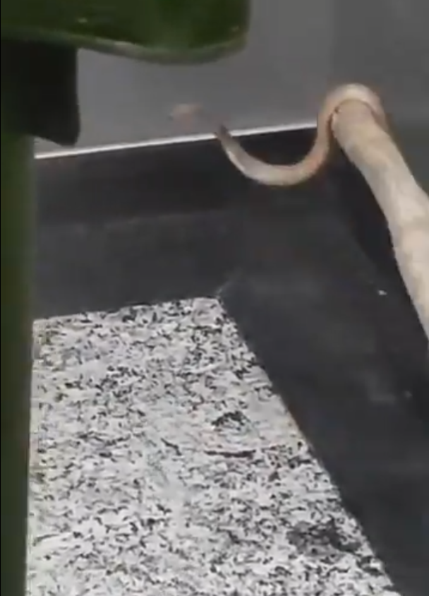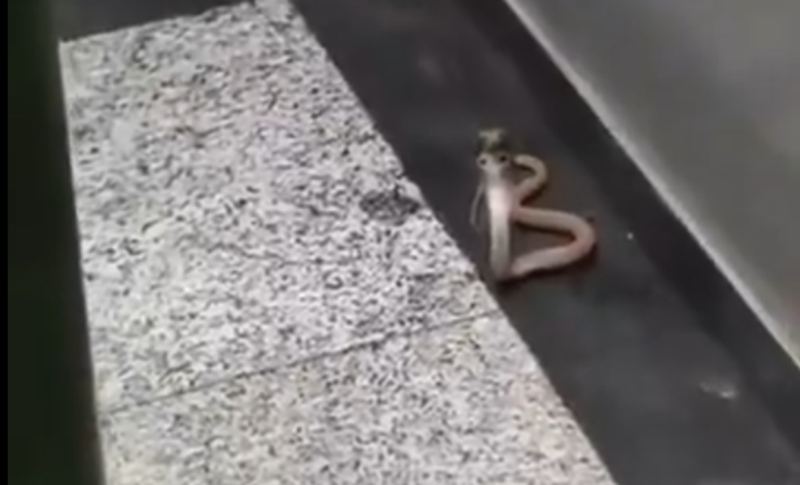 印度新市鎮諾伊達(Noida)住宅大廈頻頻出現蛇蹤,最新是一個高級大樓社區,竟然有毒蛇眼鏡蛇「遊𨋢河」。電梯門一打開,該眼鏡蛇抬頭凝視眾人,嚇到住戶尖叫聲四起。網上片段可見管理員用木棍捉蛇,眼鏡蛇戰鬥力高昂,抬高上半身咬木棍,十分嚇人。管理員最後讓眼鏡蛇纏上木棍,並將之放入一旁的大垃圾桶內,再放回附近大自然。