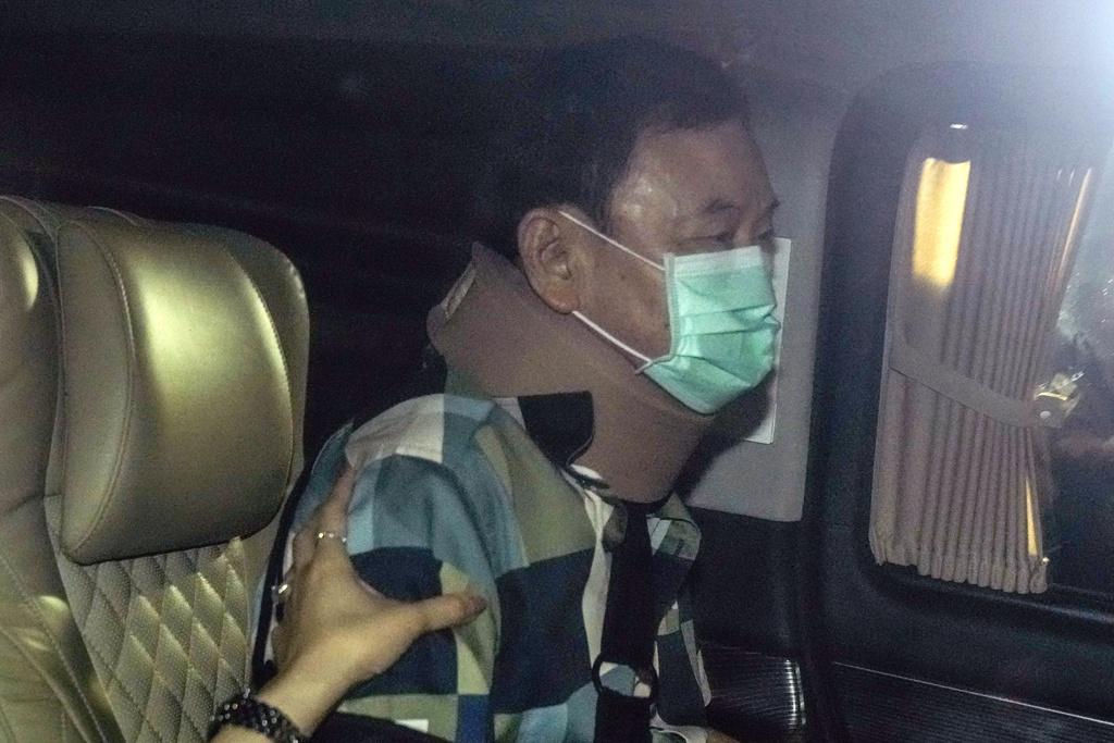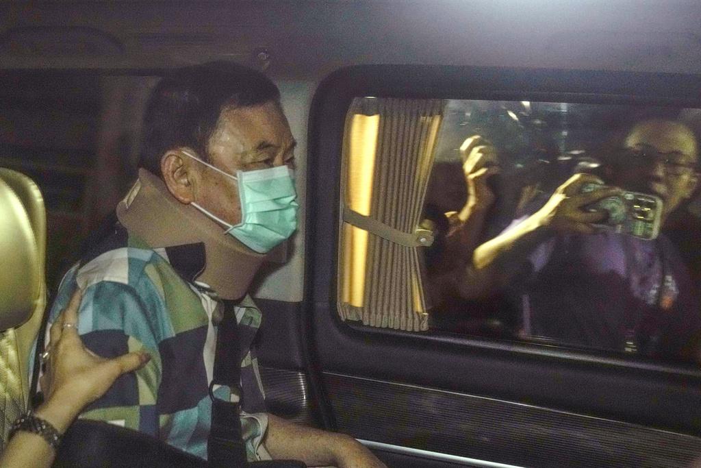 泰國政局|泰國前總理他信假釋出獄 戴住頸箍上車 返回寓所