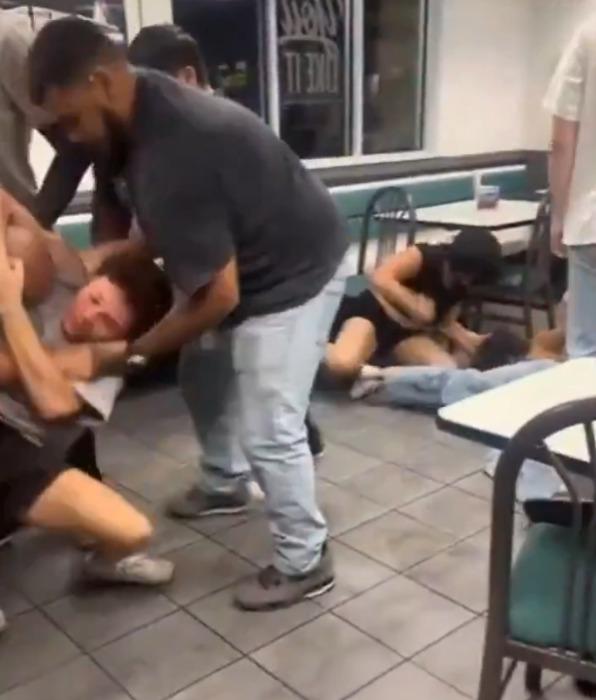 據《紐約郵報》報道,事件起因是店員將其中一桌顧客的餐點送到另一桌,引發雙方爭執。網路上流傳的影片可以看到現場一度陷入混亂,多人相互推擠、毆打,店內座位和地板都沾滿血跡。