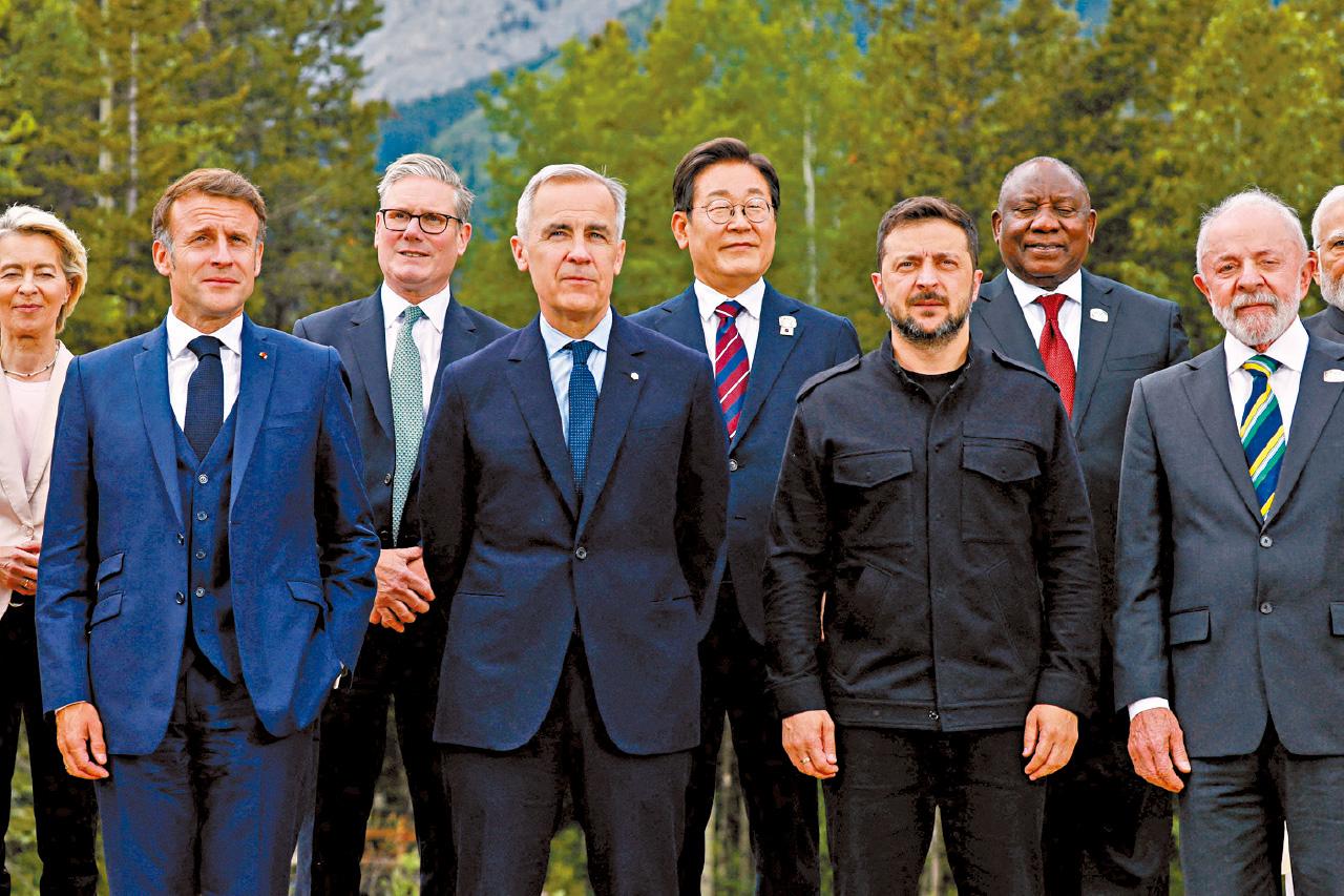 加拿大總理卡尼發表主席聲明,呼籲以制裁等手段,最大限度向俄方施壓。聲明指,支持特朗普為實現烏克蘭持久和平所作的努力,而烏克蘭目前已承諾無條件停火,認同俄羅斯也須這樣做。外界原觀望澤連斯基繼早前出席已故教宗方濟各葬禮時,與特朗普短敘後,能於今次峰會再跟特朗普會晤,但因特朗普縮短行程而落空。澤連基斯最終只跟G7領袖及北約秘書長呂特會面,討論了支持烏國捍衛主權的方式,包括增加國防預算,以及支援修復和重建工作。其中卡尼宣布向烏國再提供逾20億加元軍援,以及逾20億加元貸款,並對俄實施新一輪金融制裁。卡尼指基輔等地最近遭受的攻擊,反映西方必須堅定支持烏克蘭。