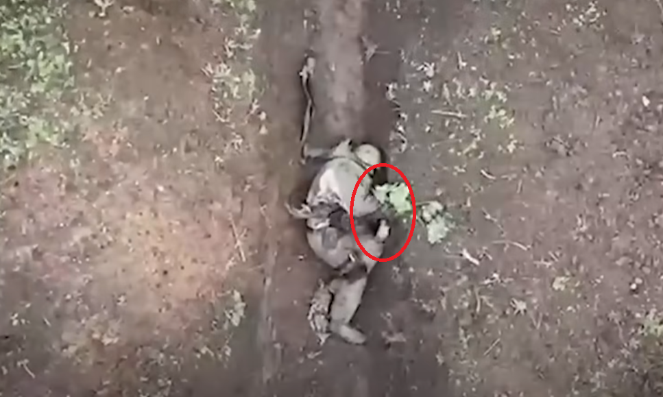 片段由設於烏軍無人機的鏡頭拍攝,可見無人機瞄準該名側臥在戰壕中的俄軍後,投下第一枚榴彈。榴彈落在俄軍的背脊,並沒引爆,他隨即發現背部有異物,伸手繞到背後,把榴彈用力擲開,然後見他站起來跑走。第二個鏡頭再見到他側臥於戰壕,無人機再度投彈,今次炮彈落在他腹部附近,但同樣沒有爆炸,又被他隨手丟開。