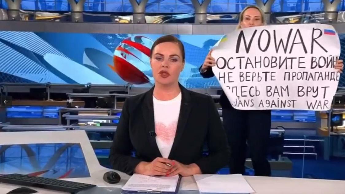 俄羅斯國營電視台第一頻道(Channel One)女編輯Maria Ovsyannikova,在周一(14日)晚在闖入一個直播新聞節目,並舉起反戰標語,呼籲觀眾勿相信政府的戰爭宣傳,形容是謊話。Maria Ovsyannikova事後被捕,她因事前拍攝呼籲民眾上街反對出兵烏克蘭,遭法院裁定罰款3萬盧布(折合約2,140港元)。