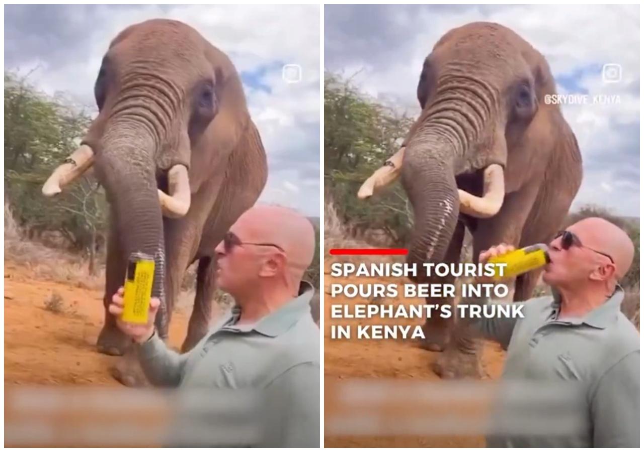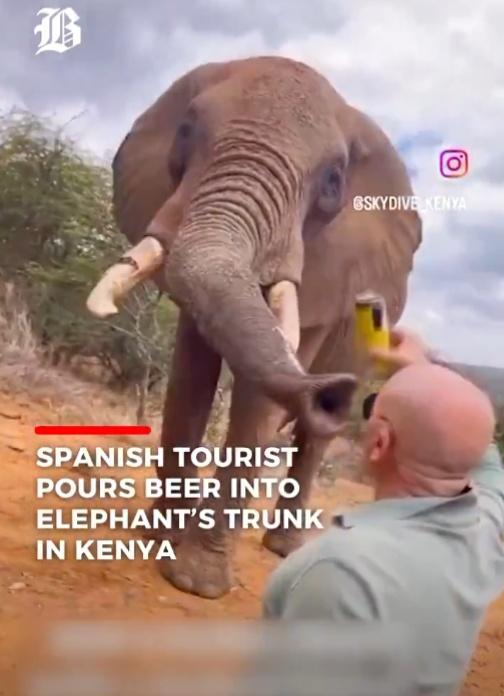 不少遊客都到非洲親眼一看當地的野生動物,近日卻有一名西班牙男子在肯雅旅遊期間,有幸與大象近距離接觸,他卻不珍惜愛護,竟然把啤酒倒進大象鼻子,還得意洋洋的拍片並分享網上,隨即引起大批網民炮轟批評,才將影片刪除。