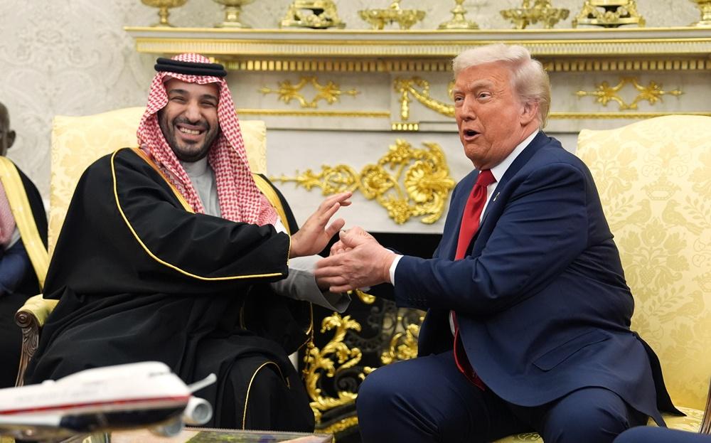 特朗普晤沙特王儲,沙特宣布對美投資擴大至1萬億美元。(AP)