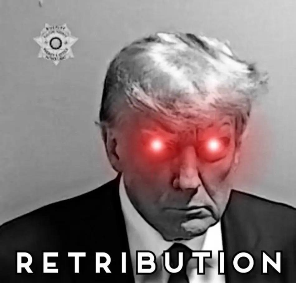 特朗普最後以20萬美元交保獲釋,不過他的司法檔案照也被公開,只見特朗普表情嚴肅,穿着藍色西裝,打着紅色領帶,照片一曝光立即成為最熱門的網路改圖,被許多網友拿來後製惡搞。