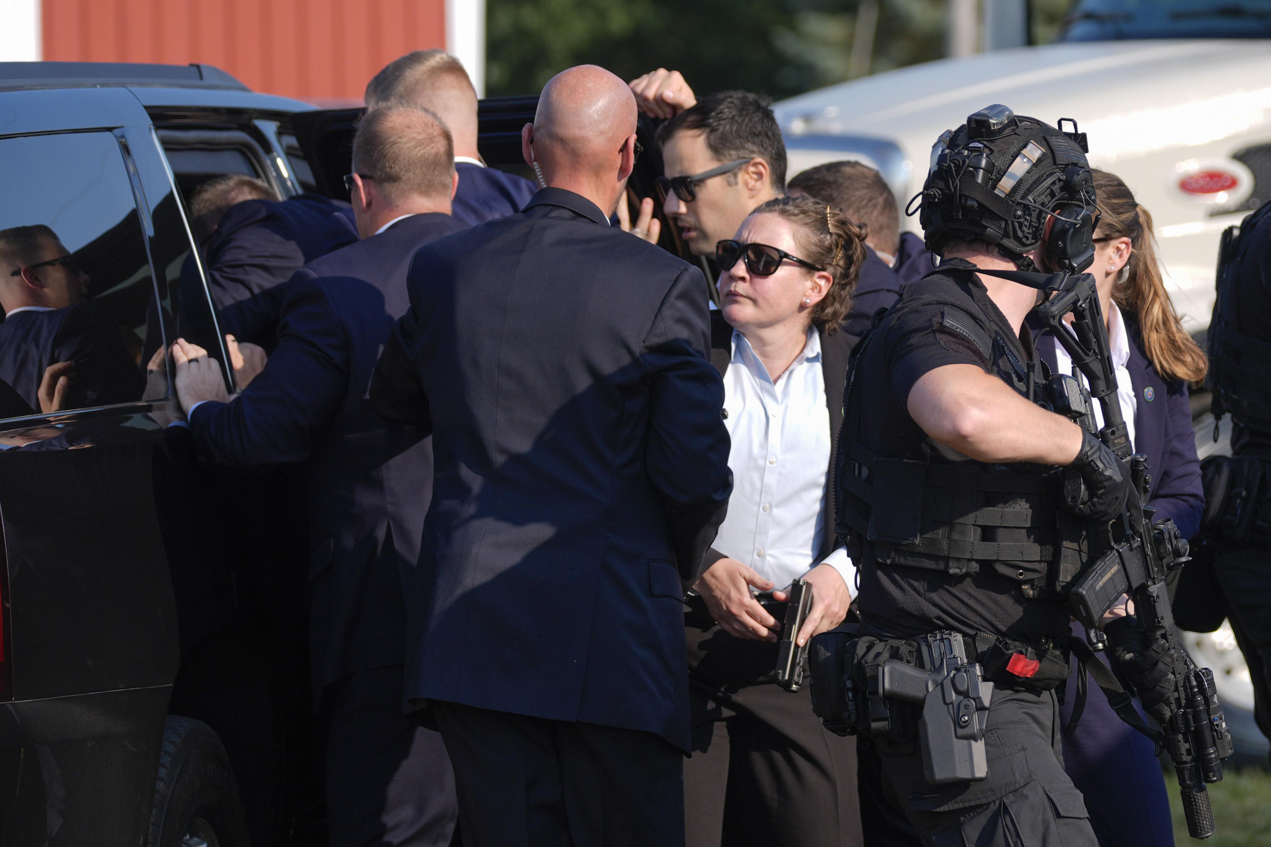 根據一段網傳畫面,當特朗普正在台上發表演說時,其右後方紅色建築屋頂上可見2名黑衣狙擊手。接着現場接連爆出槍響,鏡頭一轉可見特朗普已被特勤人員壓在地上。槍手在距離舞台約400英尺(約121米)的屋頂上被槍殺,有目擊者稱他看到特工「打爆了槍手的頭」。