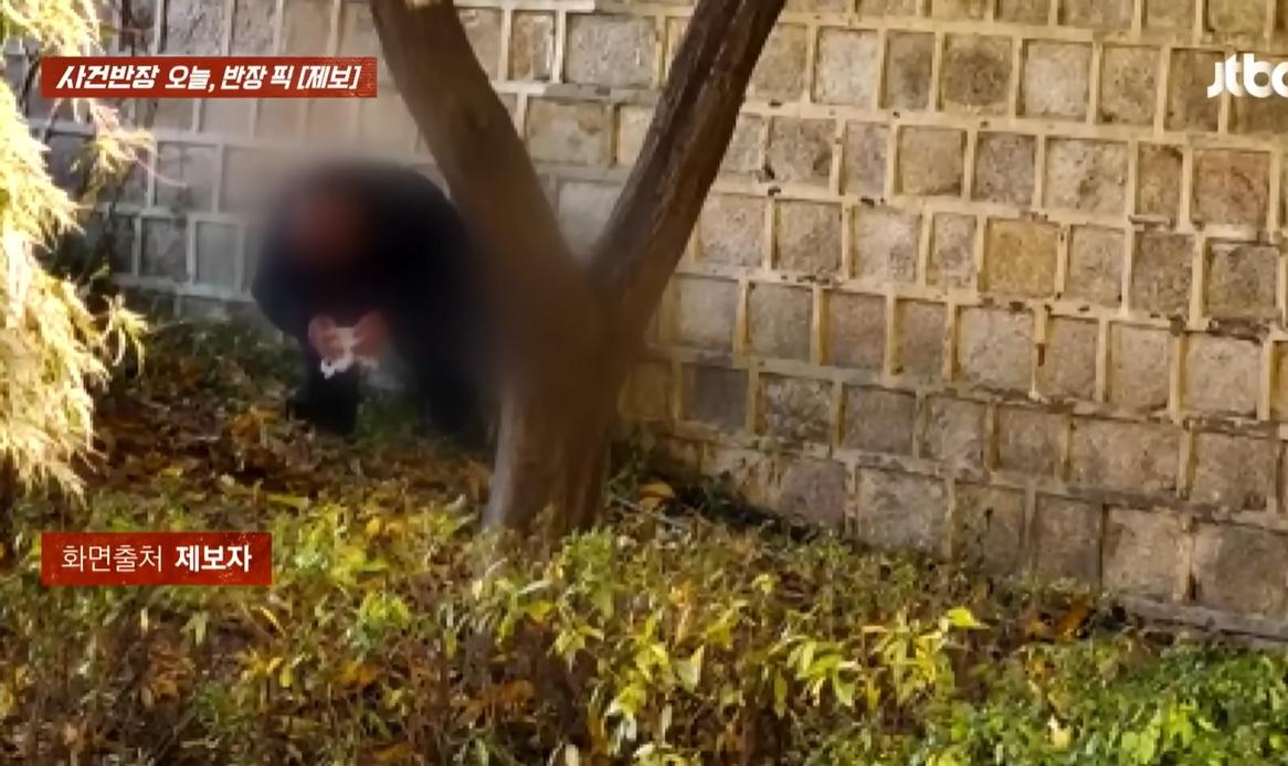 韓媒JTBC News報道,事發於本月10日中午,地點是首爾景福宮神武門附近一道古蹟石牆。從民眾拍下的畫面可見,一名中年男子蹲在石牆前一棵樹下疑似大便,雙手拿著紙巾。