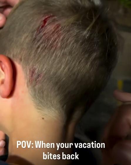 男童動物園體驗蟒蛇掛頸,慘被咬頭浴血。(IG)