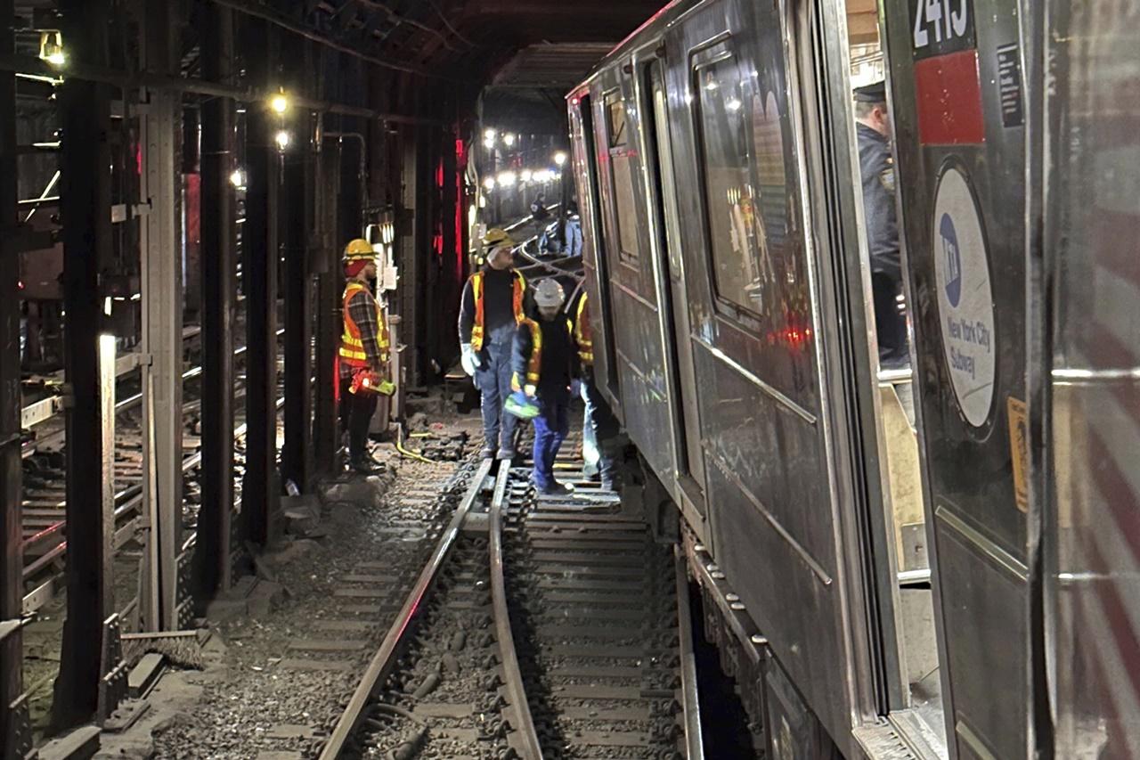 紐約地鐵兩列車相撞出軌,最少24人傷3綫暫停服務。(AP)
