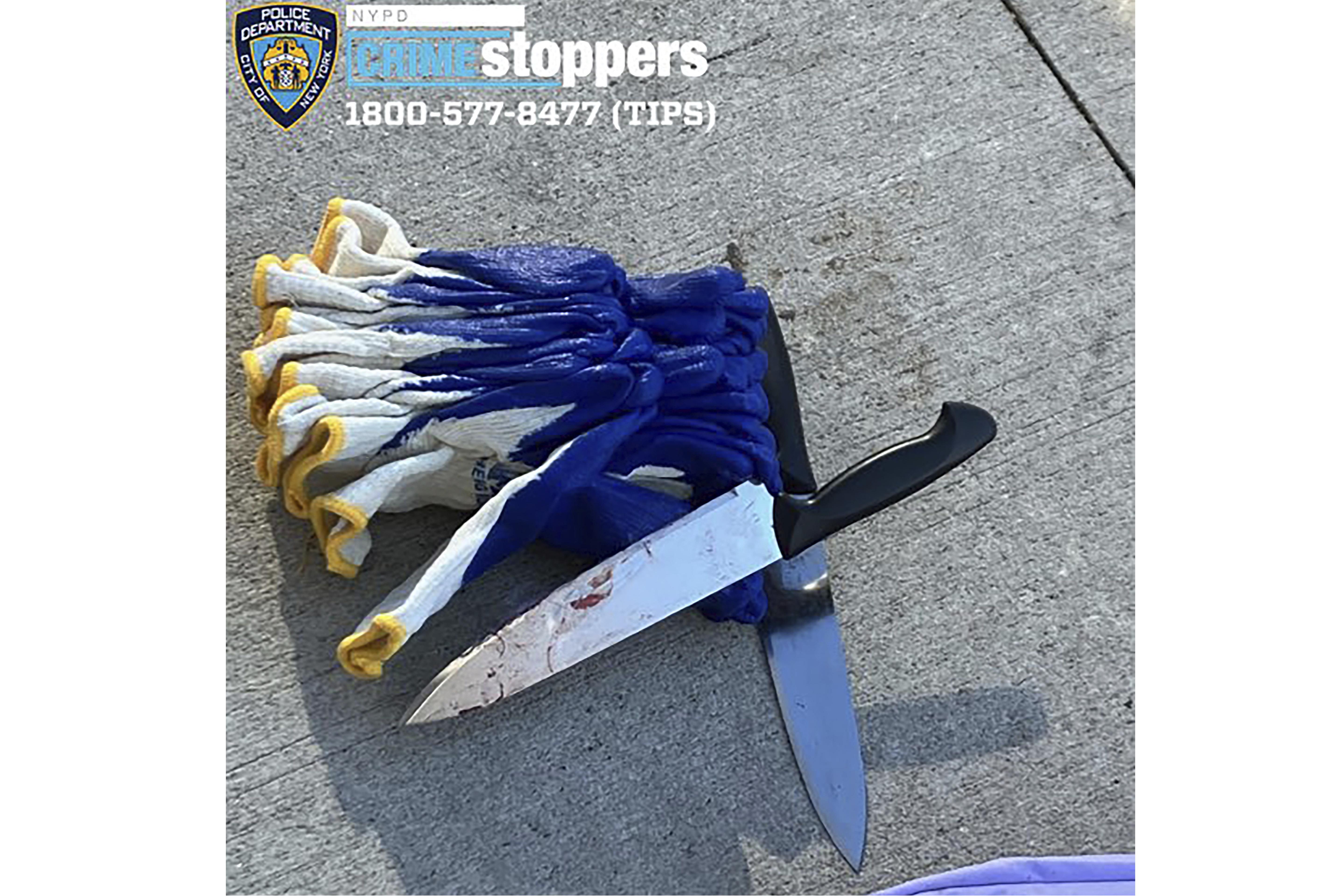 當地時間18日,紐約警方公布疑犯的犯案殺人工具。(美聯社)