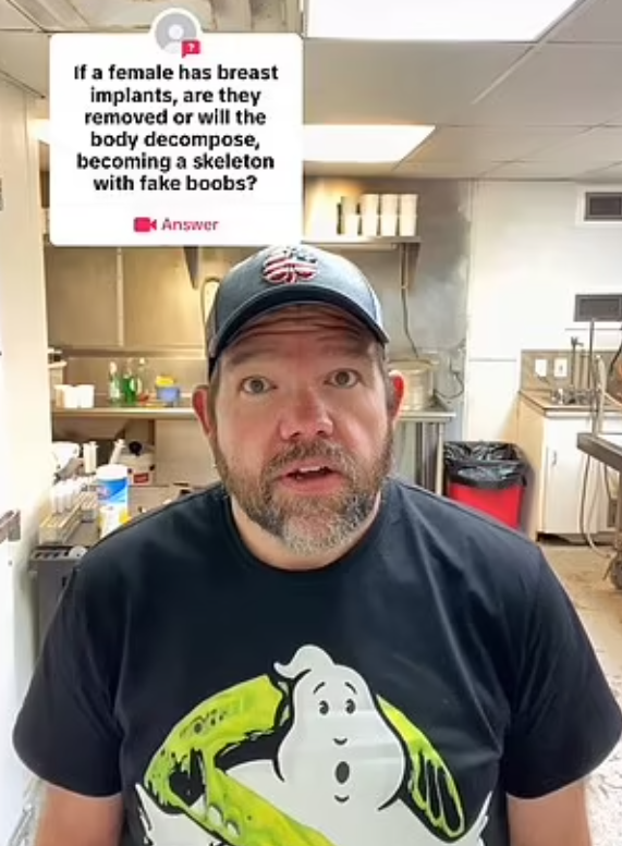 萊德福德(Gerald Ledford)因在TikTok上分享關於生命結束時的一系列陰暗細節,而成為當地網絡紅人。最近有人問他遺體土葬前,隆胸矽膠會否取出,因為它們是由不會自然分解的材料製成的。萊德福德回答說,通常不會將乳房植入物取出,但若家屬要求,他會取出交還,「它們是你的。你買了它們,你可以把它們帶到墳墓裡去」。由於矽膠不會自然分解,「當你(的遺體)分解,假乳房仍會存在……但周圍的皮膚會縮小並分解」,即是隆胸物最終會與骨頭,一起永遠留在棺木裡。不少網民對此感到震驚,有人直言「噢……我做隆胸手術時沒有考慮到這一點!」