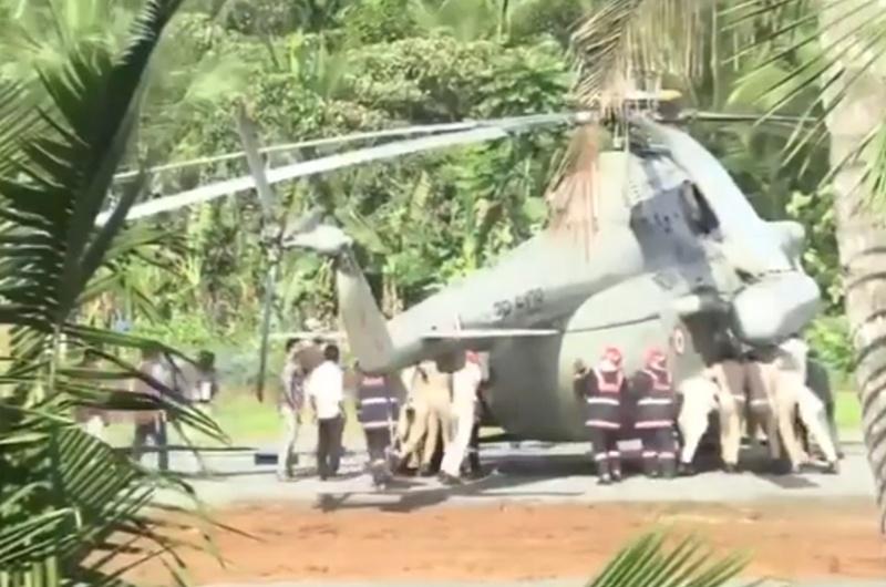 印度總統穆爾穆所乘搭的直升機降,於當地周三(22日)傳出降落於停機坪時,停機坪表面部分塌陷,直升機機輪陷入其中,十數名消防及警員紛紛上前以人肉扶正直升機。