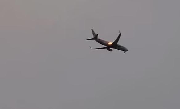 客機折返機場時,引擎一直「噴火」。(互聯網)