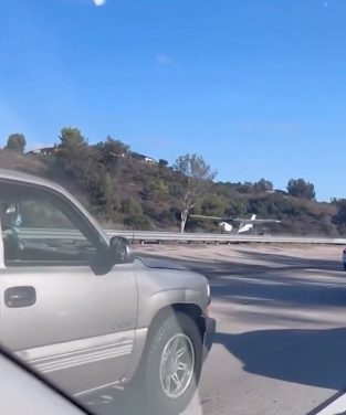 美國南加州一架小飛機緊急迫降在高速公路上。
