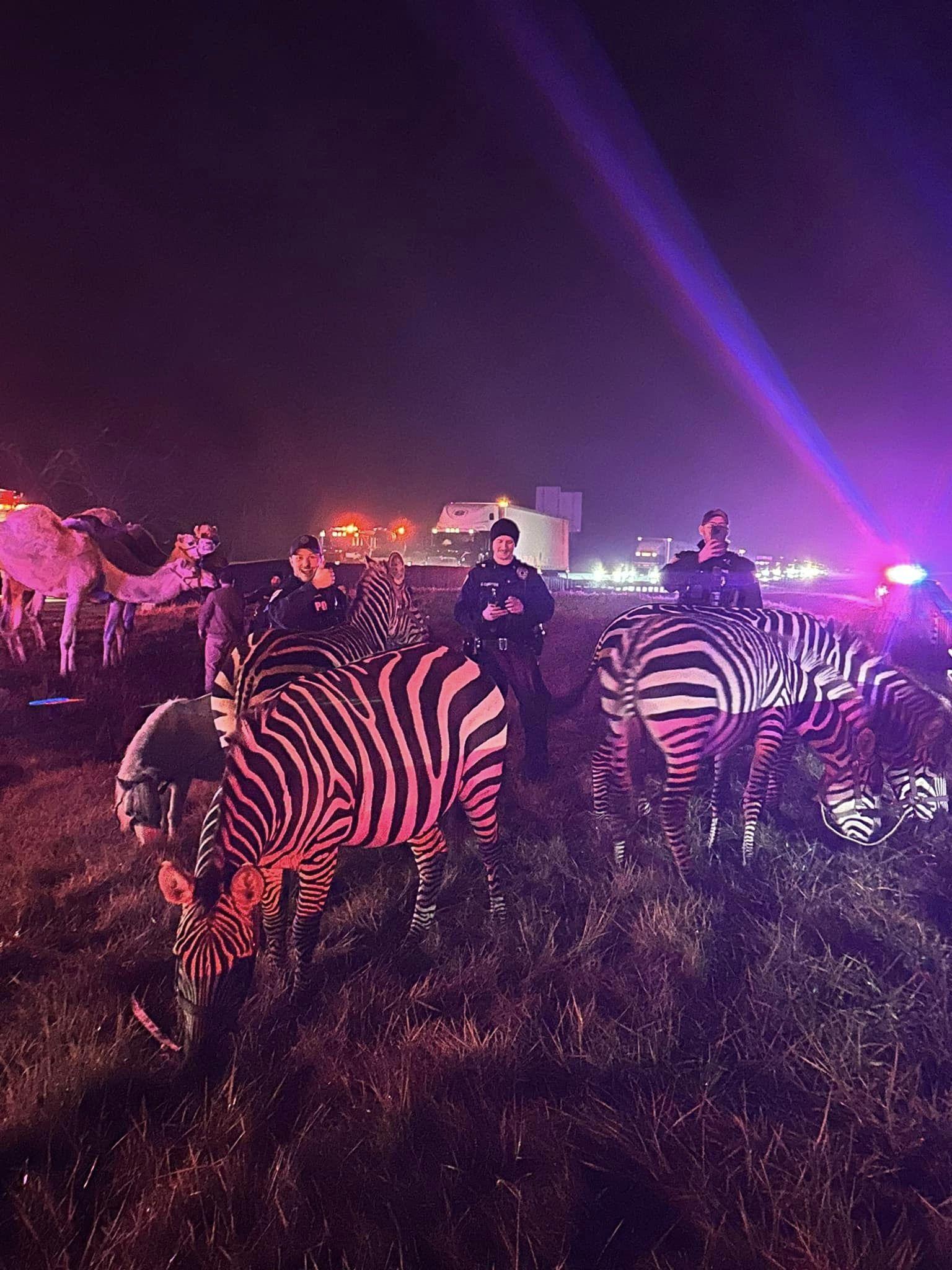 美國馬戲團貨車公路上起火 多匹駱駝和斑馬逃脫上演《荒失失奇兵》