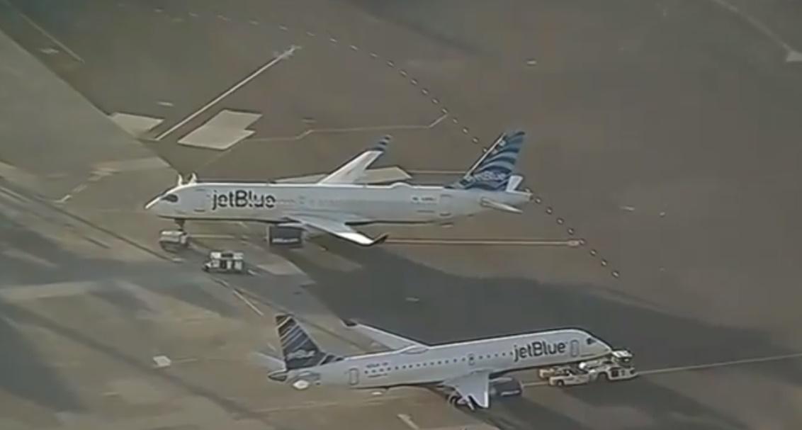 機場當局表示,飛機是在機場的除冰區域發生觸碰,兩架飛機編號N2157J及N956JT,原定分別飛往拉斯維加斯以及奧蘭多,事發後航班取消,有乘客描述,當時感受到撞擊,但不是明顯的激烈振動。捷藍航空則表示,會對事件進行調查。網上相片顯示,其中一架客機機翼有明顯損毀,另一架客機機尾的一邊水平尾翼折斷,零件跌落地面。