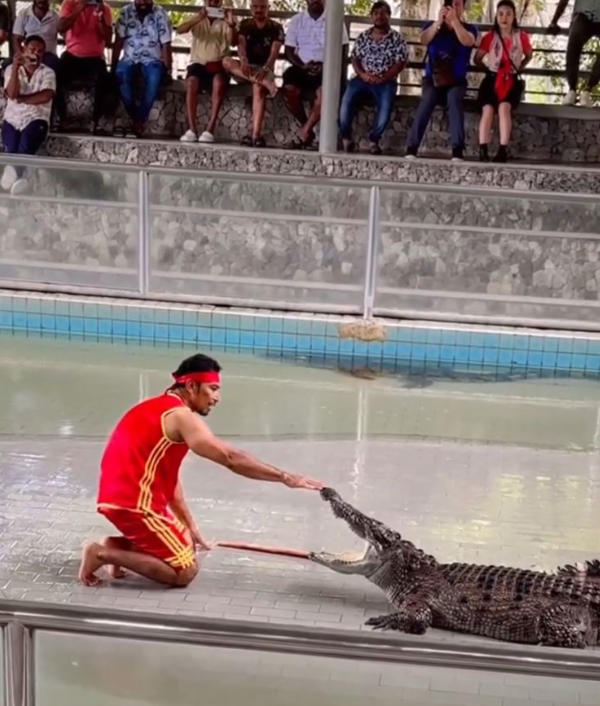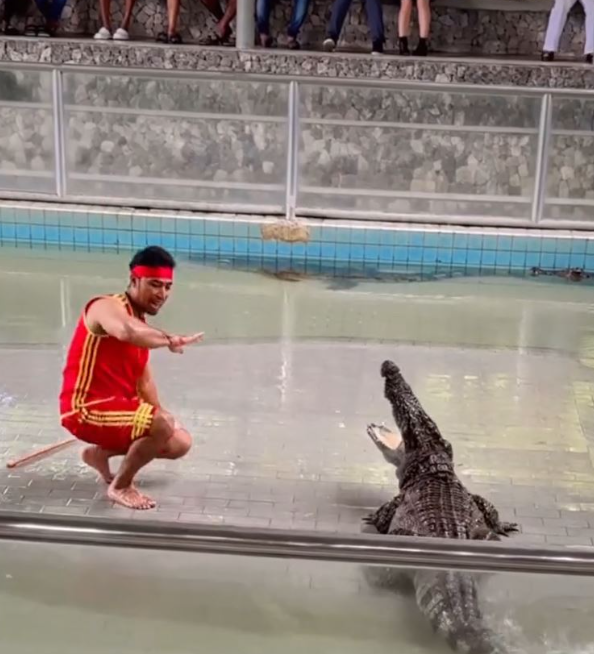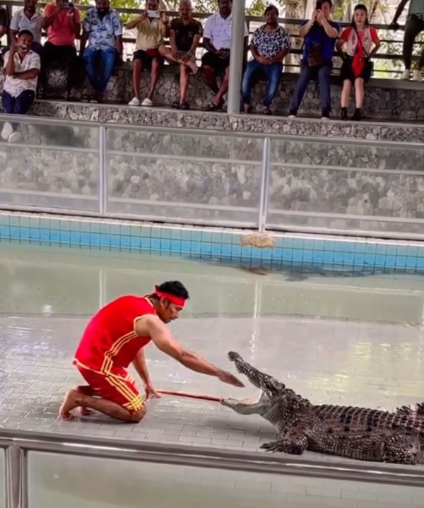 幸而鱷魚看來也有點害怕或不知所措,徐徐後退移入水裡。鮮血如「開水喉」般從馴鱷師的手不斷湧出,他無奈地離出,地上遺下一攤血跡。片段在Instagram發布後迅即錄得逾4,280萬次瀏覽,並引起網民議論。