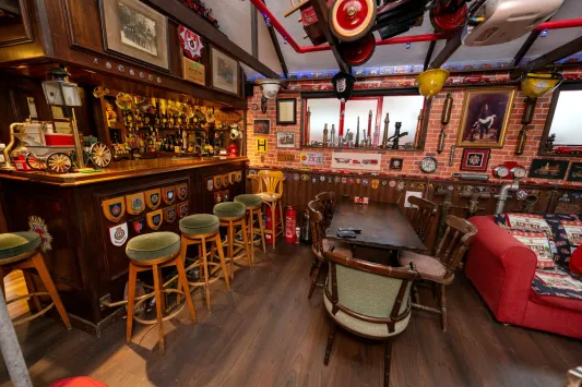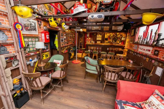 Kevin表示︰「你一進去,就會看到維多利亞時代的消防制服和斧頭,以及直至我退休前所穿的裝備……還有模型消防車和消防栓標誌,一些我收集的小物件。」他並說︰「我盡量保持真實性,吧台是來自Basingstoke消防局的,我當年有份建造,於是問有關方面能否給我」,「它對我來說有著美好回憶。」