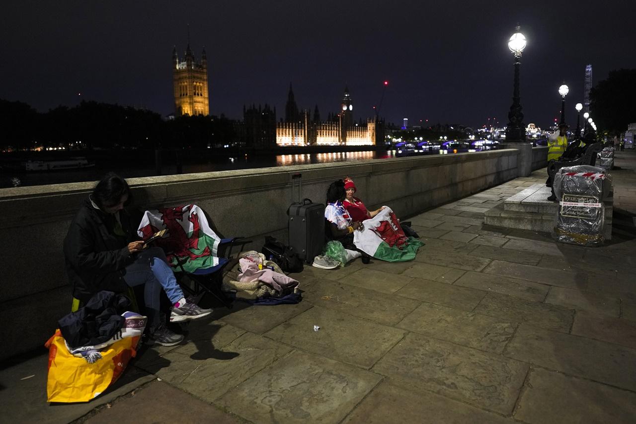 英女王的靈柩將在周三於西敏廳,一連四日讓公眾瞻仰,晚間已有民眾開始排隊。(AP)