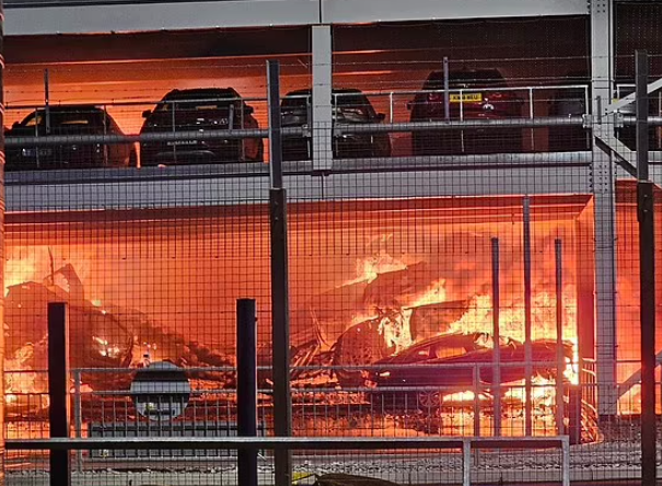 報道指,最先起火的汽車可能是一輛Range Rover,疑因電路故障或燃油管道洩漏導致。一名消防員表示,該車爆炸後導致鄰近一些電動車亦連環爆炸,令火勢蔓延,估計有多達1,500輛車輛因大火及停車場坍塌受損。涉事停車場為多層設計,可容納1,900輛車輛,其於2019年開放,據報並未安裝灑水系統。