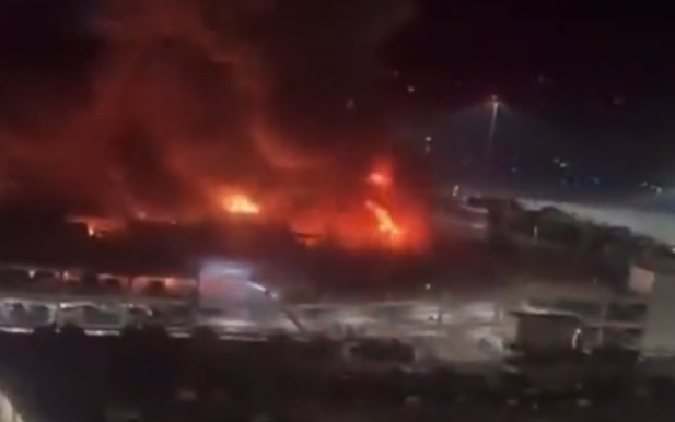 英媒公開閉路電視在事發時所拍片段,可見停車場內一輛汽車突然發生爆炸,烈焰及濃煙迅即席捲全層停車場,導致部分結構倒塌。