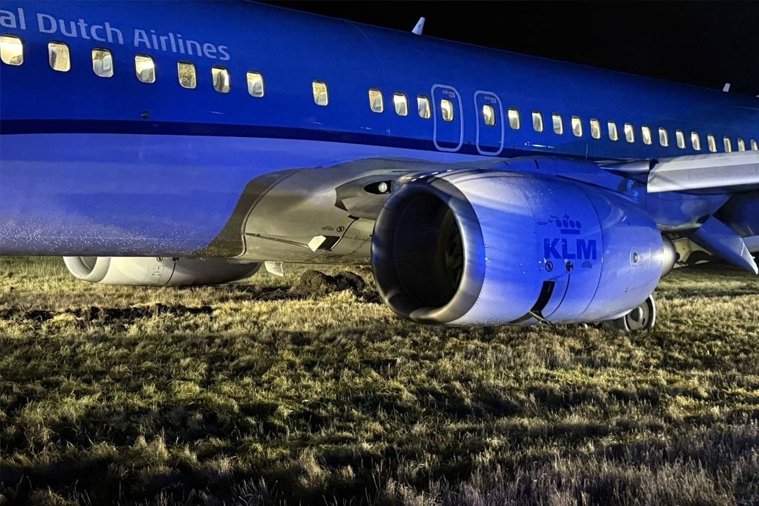荷蘭皇家航空一架波音客機衝出跑道,剷上草地停下,幸無造成傷亡。(互聯網)
