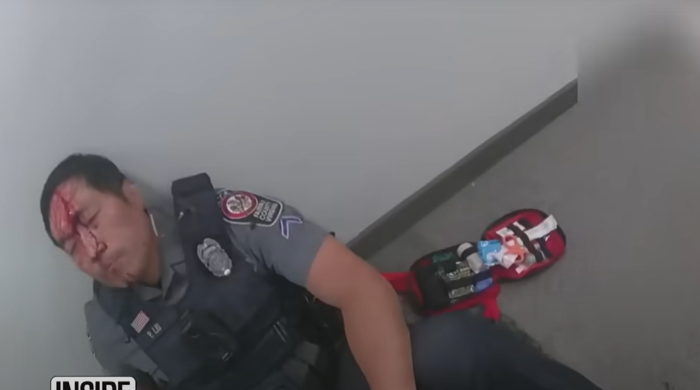 美國弗吉尼亞州一名華裔警員,上門對一名女子作「福利檢查」(welfare check)期間,女子突然亮刀發狂斬他,華裔警員最終連開3槍將她擊斃,事件引起社會爭議,警方日前公開警員當日的隨身鏡頭所拍的片段。