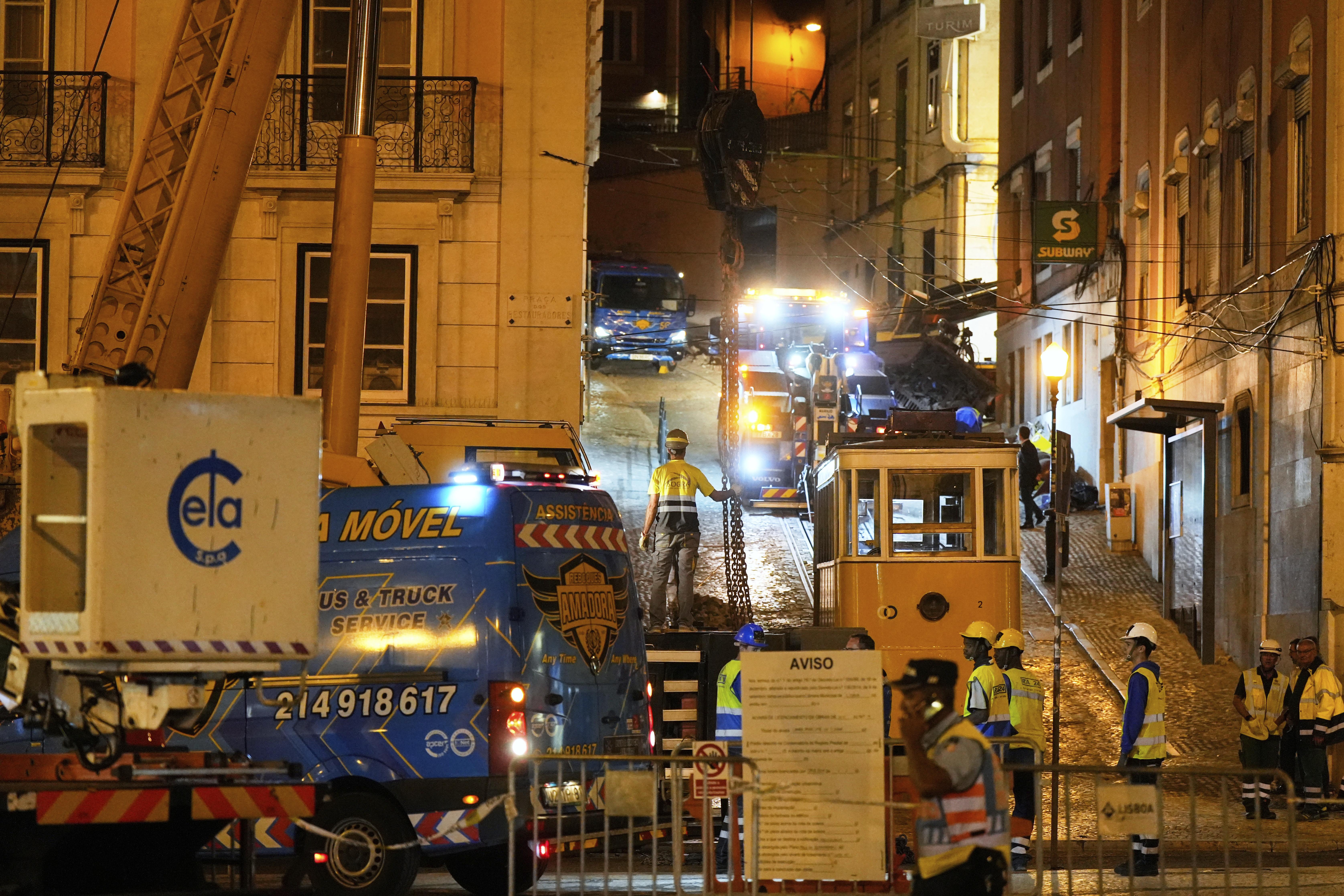 葡萄牙里斯本知名纜車出軌,死亡人數上升至17人。(圖/美聯社)
