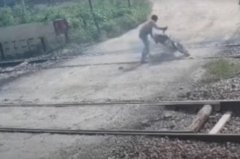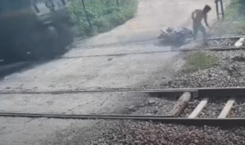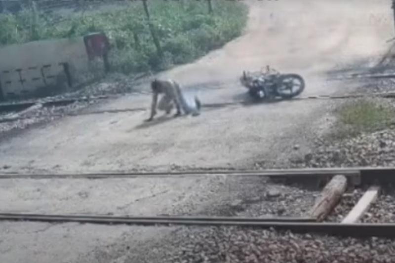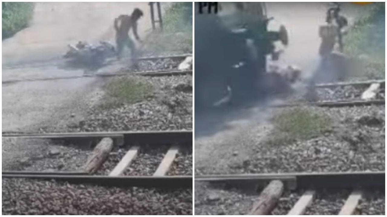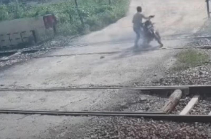 印度北方邦一名男子上周日(12日)駕駛電單車,駛過平交道期間意外跌車,他試圖扶起電單車時,驚見火車正在靠近,他本能地朝反方向狂奔,惟不及火車速度,慘被當場撞死。