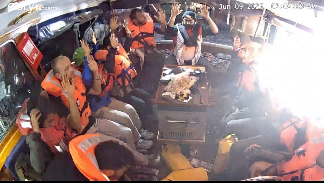 船上各人在被逮捕後高舉雙手。(網上圖片)