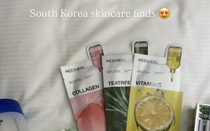 美國白宮發言人萊維特隨特朗普訪南韓,在IG展示買了韓妝。(互聯網)