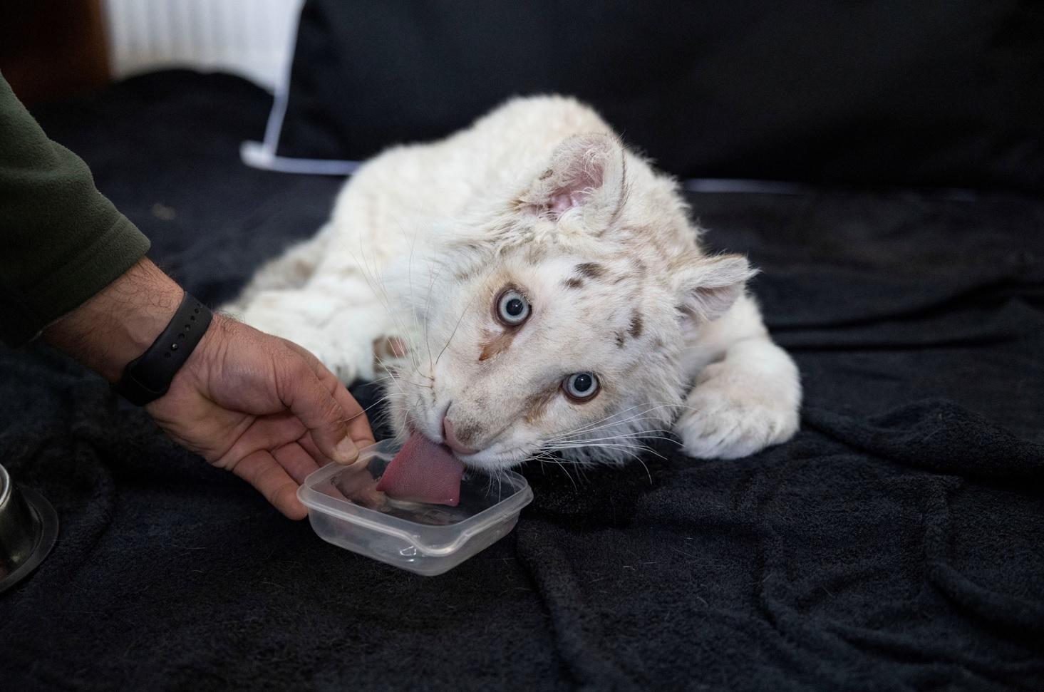 路透社報道,阿提卡動物園(Attica Zoological Park)的清潔工上月28日在停車場的垃圾桶撿到這隻3個月大的白虎B,立即通知園方。